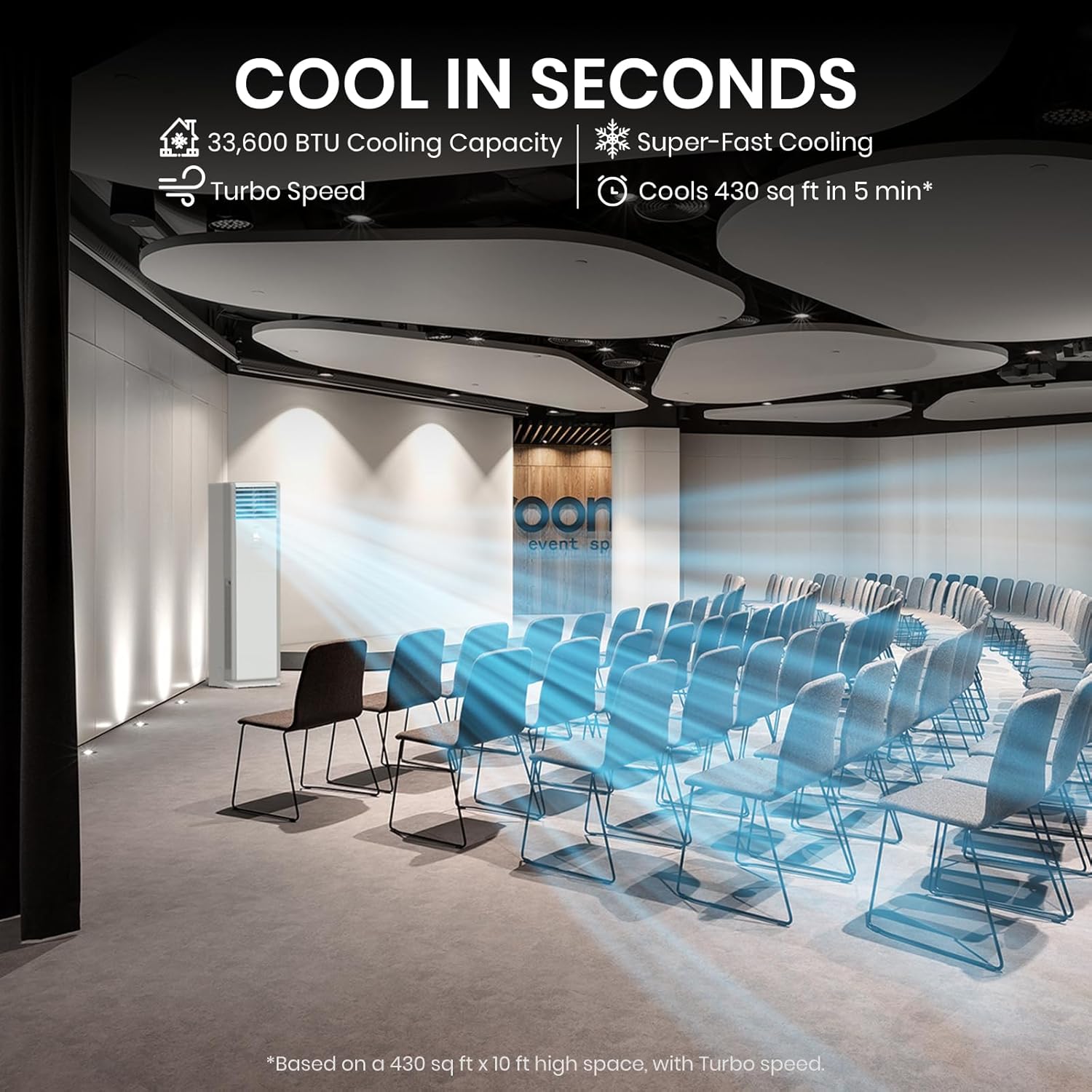 • • Adjustbale air deflectors deliver airflow up to 50 ft. for wider coverage